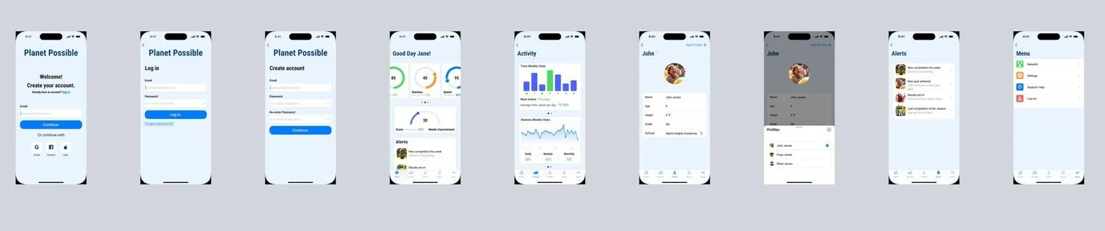 As a team of four designers, Fish Bladder hired us to design a mobile, tablet, and desktop backend data portal that connects parents and teachers through tracking the progression of children’s gross motor skills.
