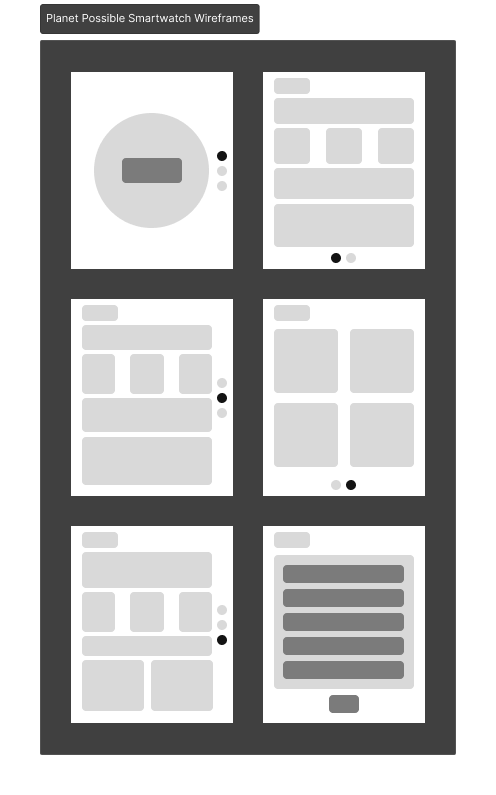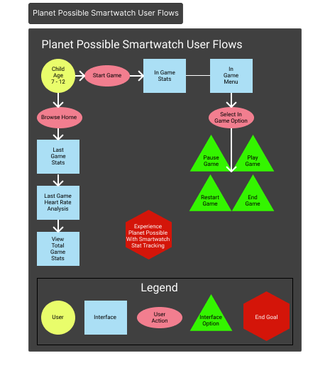 We designed the ideal smartwatch interfaces to coincide with every aspect of the game Planet Possible and the newly designed Data Portals that collect and share this valuable information with users.