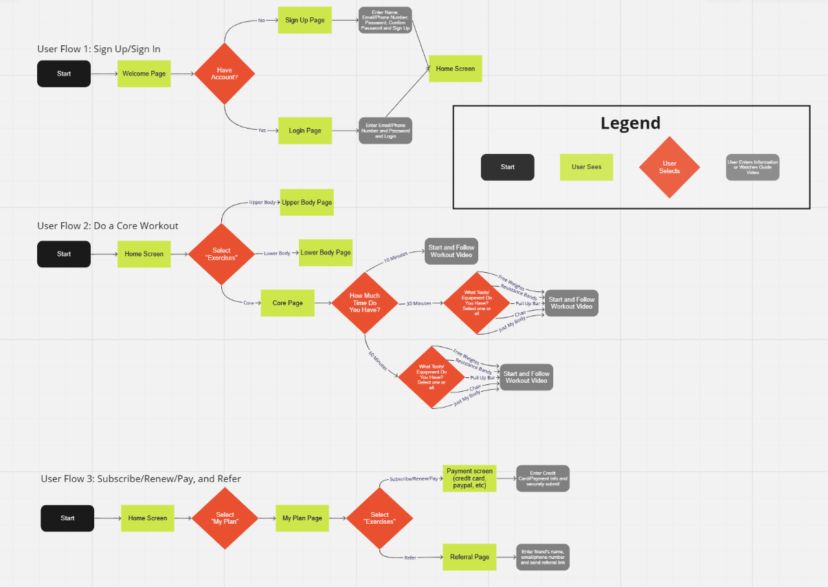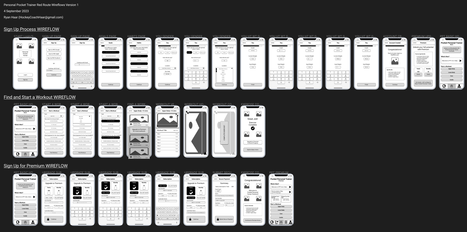 Red Route Sketches (Sign Up, Complete Workout, Upgrade to Premium)