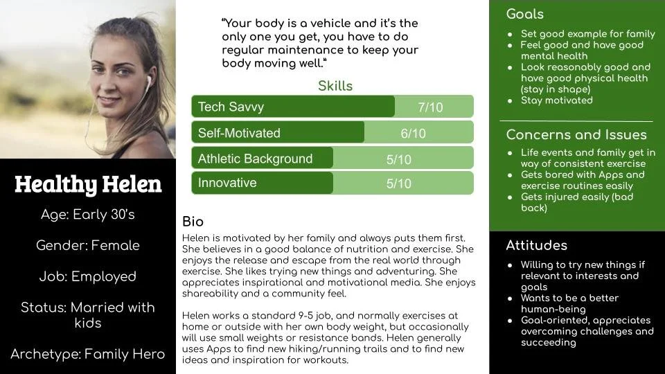 Above the age of 16 years old, uses a smartphone as a tool and resource of information, has a general interest in fitness, nutrition and health, and lives a busy event-filled lifestyle.